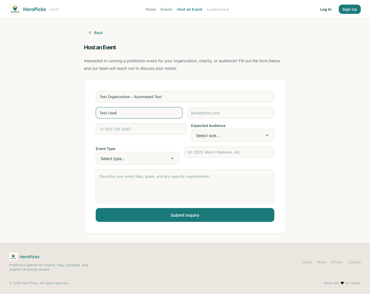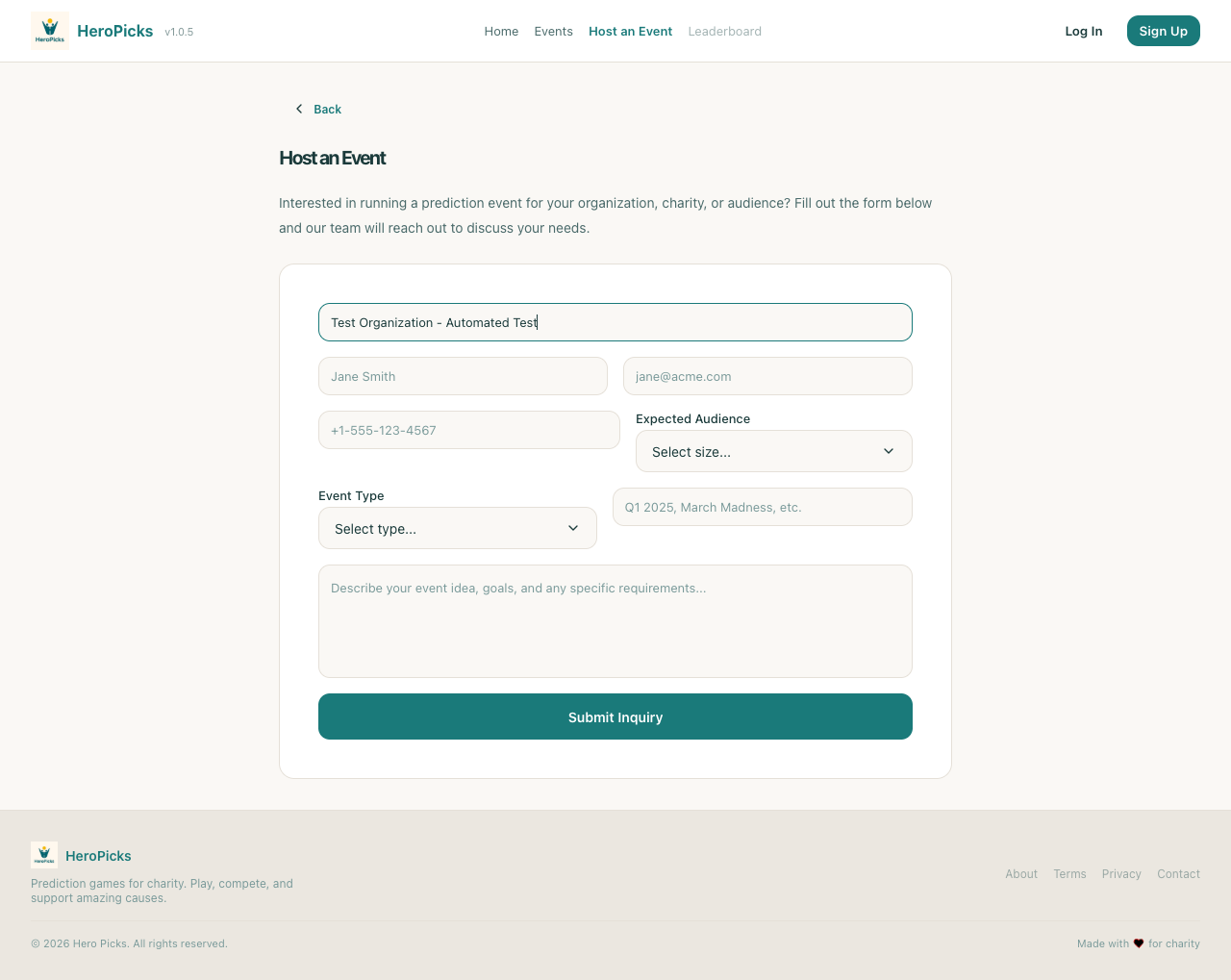 Step 23: Clicking Host an Event navigates to inquiry page