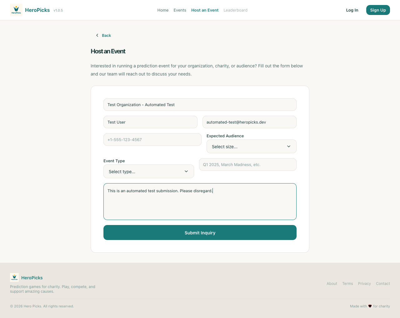Step 23: Clicking Host an Event navigates to inquiry page