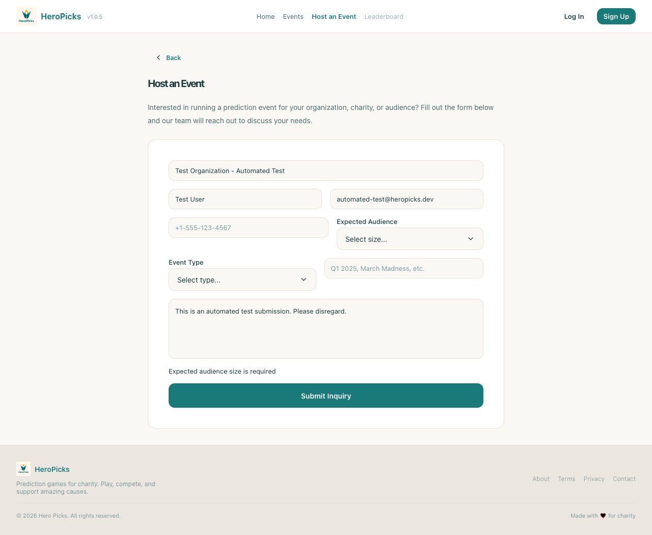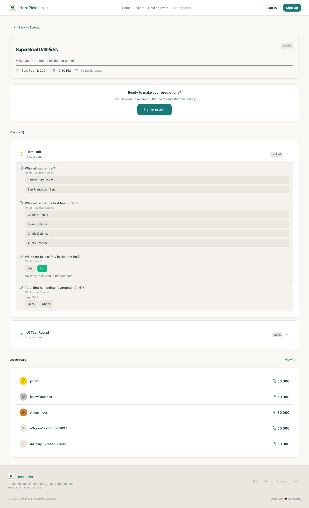 Step 29: Footer retains Hero Picks branding on branded event page